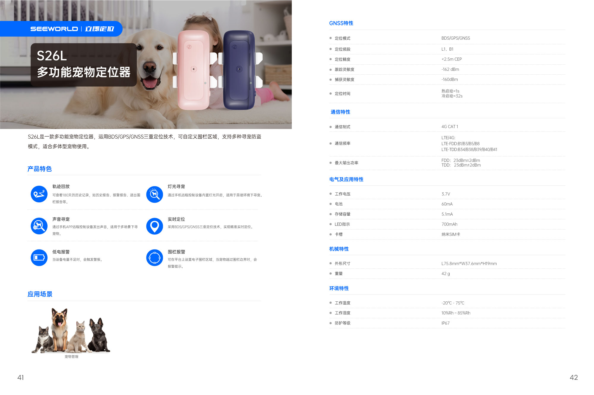 S26L是一款多功能寵物定位器,運用BDS/GPS/GNSS三重定位技術(shù),可自定義圍欄區(qū)域,支持多種尋寵防盜模式,適合多體型寵物使用。