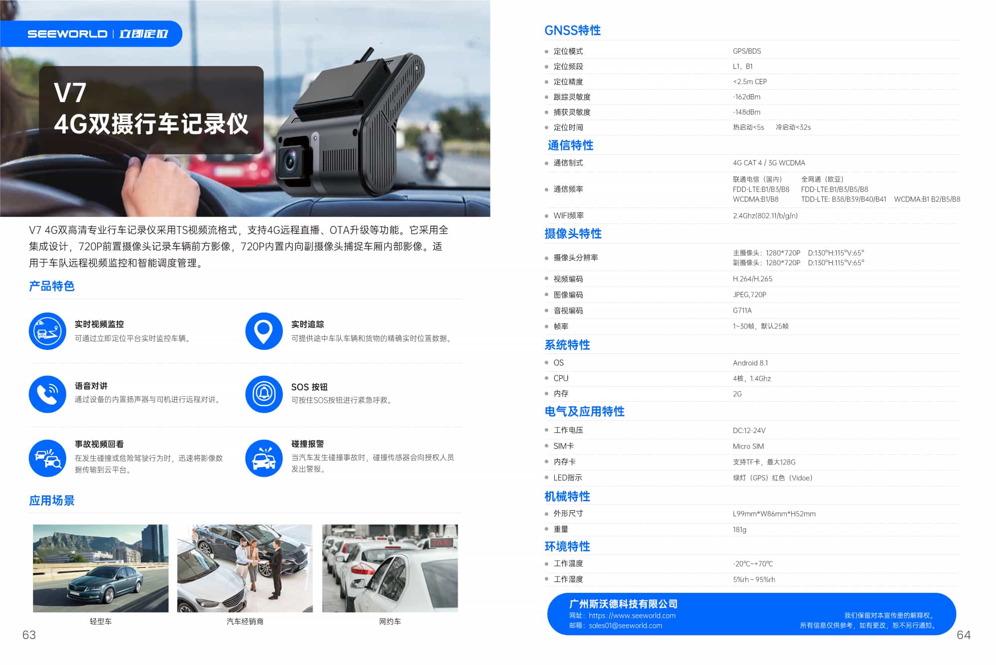 V7 4G雙高清專業行車記錄儀采用TS視頻流格式,支持4G遠程直播、OTA升級等功能。它采用全集成設計,720P前置攝像頭記錄車輛前方影像,720P內置內向副攝像頭捕捉車廂內部影像。適用于車隊遠程視頻監控和智能調度管理。